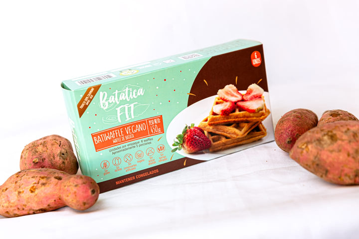 *Bati-waffles (vegano) x 6 Unidades 450 gr* Ingredientes: Batata, harina de arroz integral, bebida de almendras o coco, aceite de oliva, vainilla, polvo de hornear, canela, sal marina.