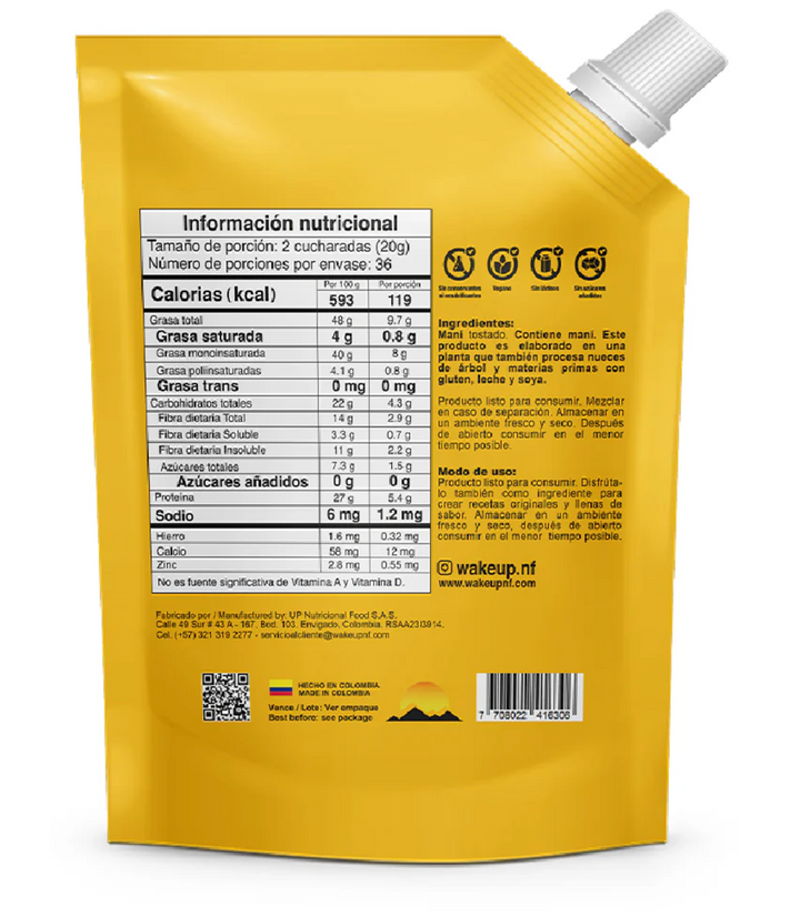 Presentación de 720 gramos de crema de mani natural es ideal para preparar recetas en casa o tu negocio. Te recomendamos consumirla con frutas, waffles, tostadas integrales, galletas integrales, batidos altos en proteína y diferentes preparaciones de repostería.
