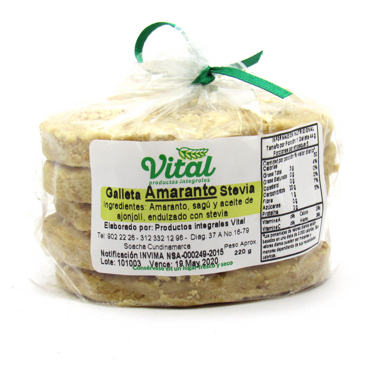Amaranto,, sagú,aceite de ajonjolí, endulzada con stevia
