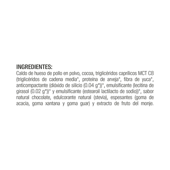 El caldo de hueso de pollo es un alimento ancestral lleno de nutrientes. Nuestra proteína en polvo Bone Broth Power® chocolate está elaborada a partir de concentrado de caldo de hueso de pollo.