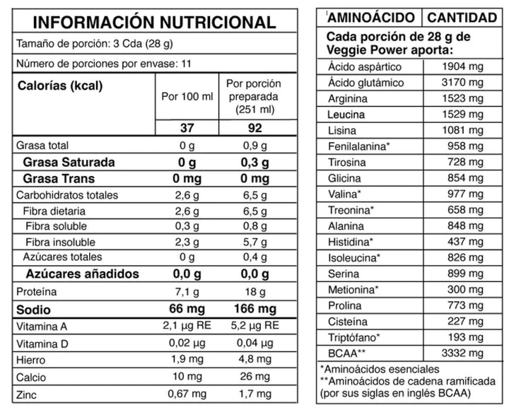 Con delicioso sabor a vainilla, Veggie Power es una mezcla única de proteína vegetal proveniente de la arveja, el arroz y las habas, las cuales garantizan un perfil completo de aminoácidos.